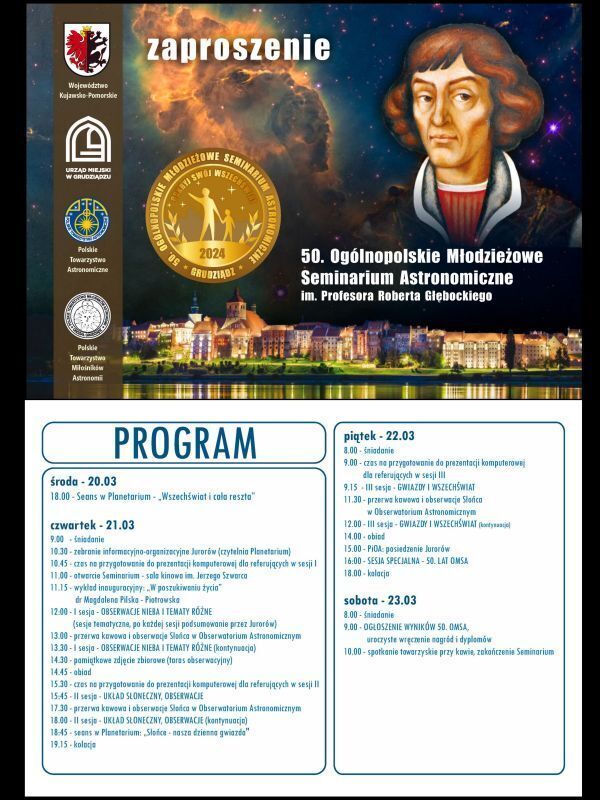 Rozpoczęcie 50. Ogólnopolskiego Młodzieżowego Seminarium Astronomiczno-Astronautycznego.