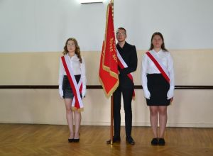 Podczas uroczystości ślubowanie przed pocztem sztandarowym złożyło czworo uczniów dumnie reprezentujących pierwszoklasistów.