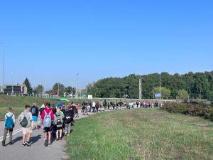 Uczniowie biorący udział w rajdzie pieszym: