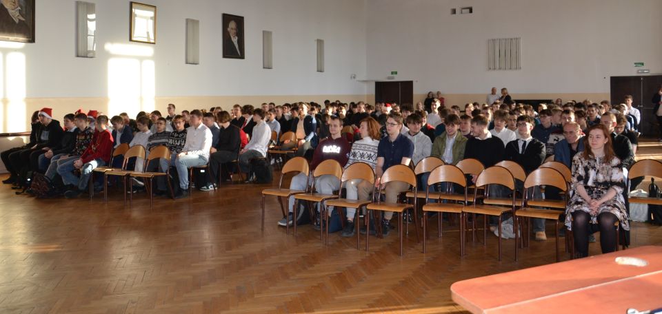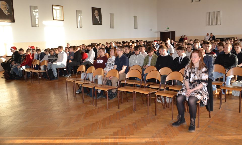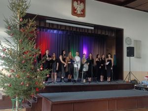 W piątek 20 grudnia, z okazji zbliżających się Świąt Bożego Narodzenia, w auli naszej szkoły odbył się koncert świąteczny w wykonaniu szkolnego zespołu. Spotkanie to było okazją do wysłuchania pięknych kolęd. Atmosfera wydarzenia napełniła wszystkich radością i ciepłem, którymi można było się dzielić w dalszej części dnia na klasowych spotkaniach świątecznych.