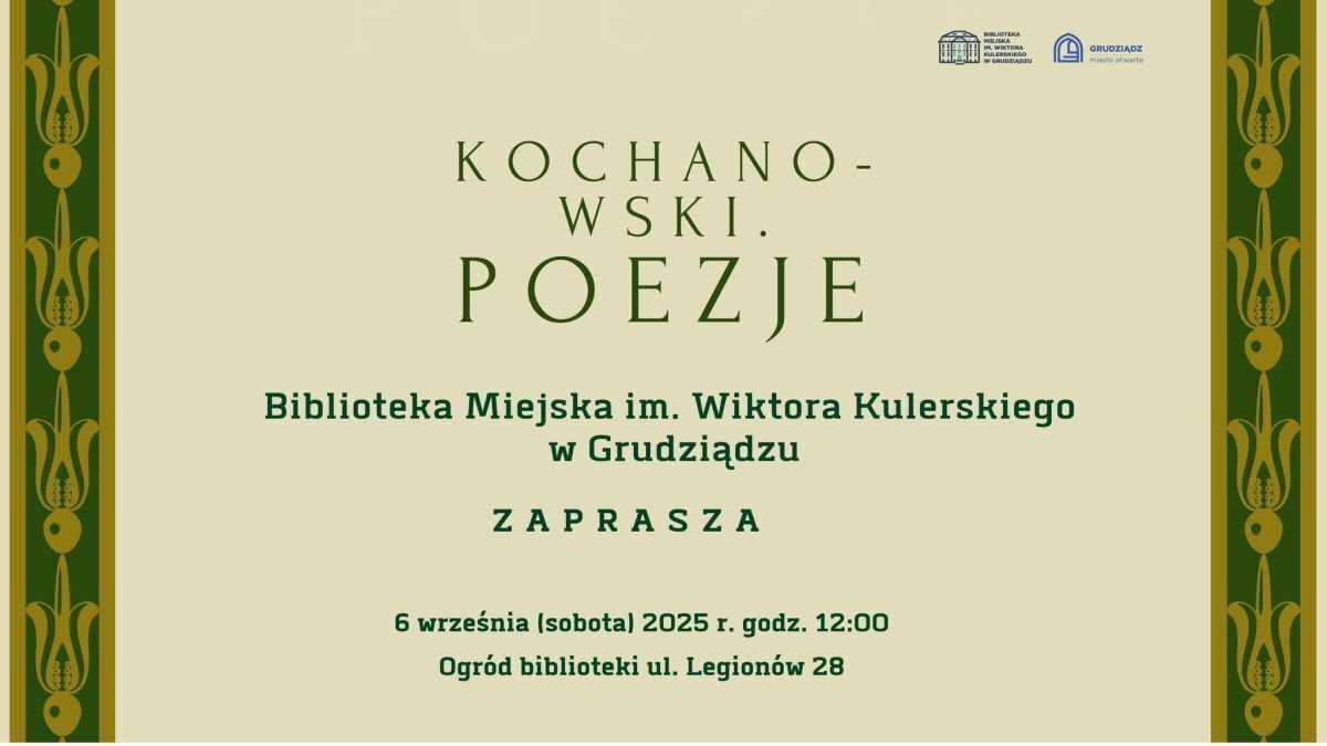Wybrane fraszki, treny i pieśni Jana Kochanowskiego zaprezentują bibliotekarze grudziądzkiej książnicy, którzy postarają się dostarczyć niezapomnianych wrażeń.