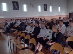 Obecni na widowni uczniowie również swoim strojem i przypiętym kotylionem, dali świadectwo swojego przywiązania do niełatwej historii ojczystej"
