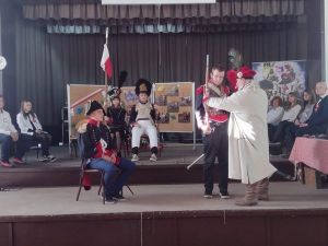 W ramach prezentowanej narracji historycznej, której głównym moderatorem był twórca Teatru Inscenizacji Historycznej- Krzysztof Górecki, uczniowie odbyli podróż historyczną do przeszłości, wcielając się w ważne postaci dla polskiej historii, wśród nich pojawił się: Tadeusz Kościuszko- Naczelnik pierwszego zrywu niepodległościowego Polaków, twórca " Mazurka Dąbrowskiego"- Józef Wybicki, cesarz Francuzów i jednocześnie twórca Księstwa Warszawskiego - Napoleon Bonaparte, dowódca Legionów Polskich - gen. Jan Henryk Dąbrowski, Piotr Wysocki, który poprowadził kadetów Szkoły Podchorążych w Warszawie do Powstania Listopadowego.