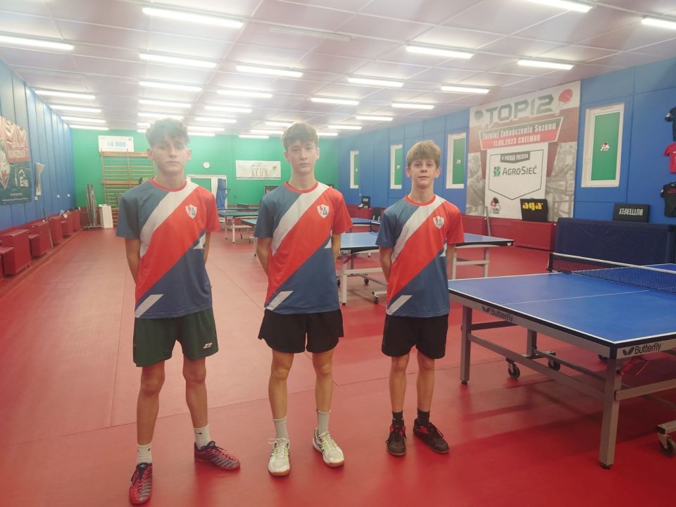 W dniu 04.11.2025r. nasi uczniowie Biernat Michał z klasy I TM, Biernat Kamil z klasy V Tel i Leszczyński Fabian z klasy I Tel uczestniczyli w półfinale Wojewódzkim Licealiady w tenisie stołowym chłopców.