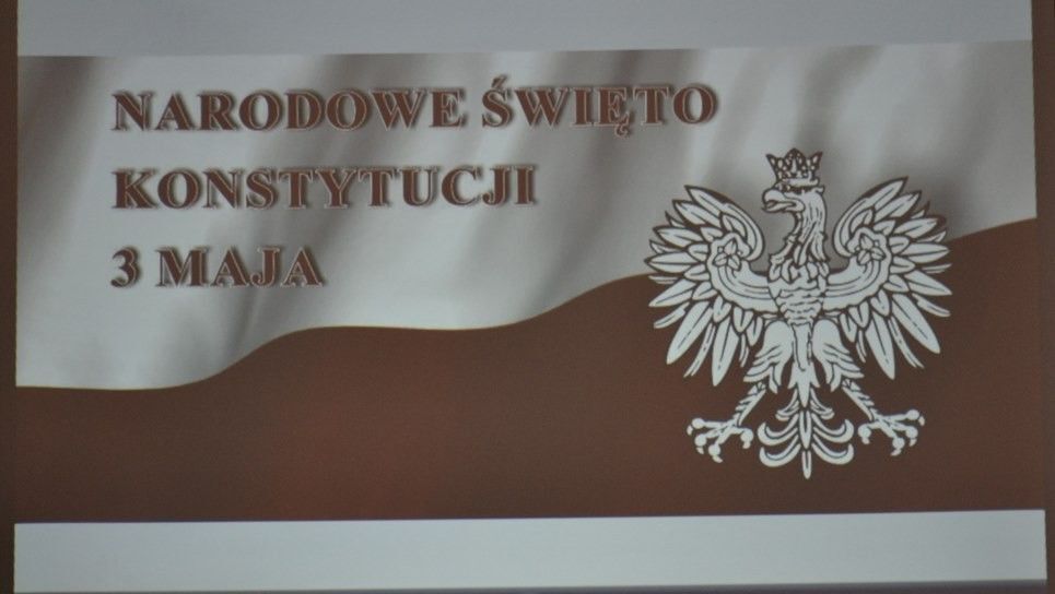 " W dniu dzisiejszym uczniowie naszej szkoły uczestniczyli w montażu słowno-muzycznym w związku z przypadającą 232. rocznicą uchwalenia przez Sejm Wielki:" Ustawy rządowej z dnia 3 V 1791 roku"/
