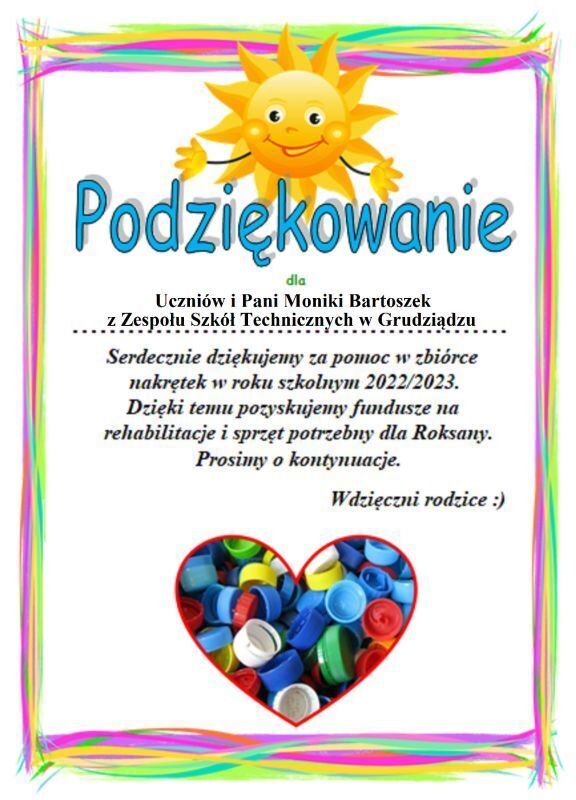 Uczniowie naszej szkoły wzięli udział w akcji charytatywnej "Zbierajmy nakrętki dla Roksany".